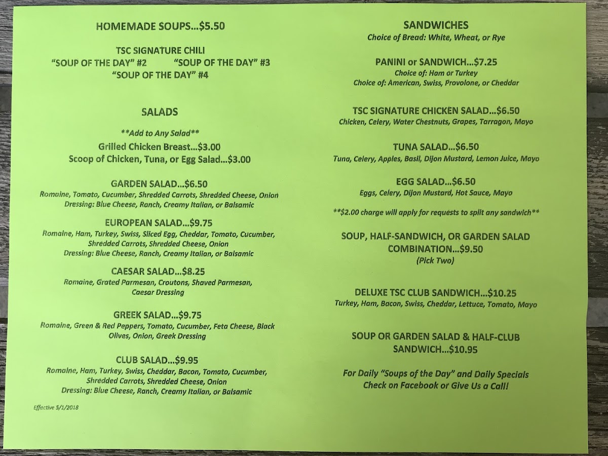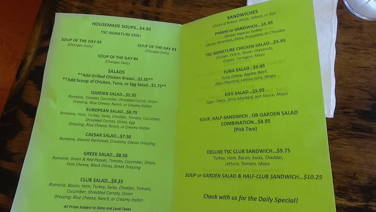 At The Soup Company, the menu wraps up into a satisfying blend of classic salads and hearty sandwiches that highlight both simplicity and value. The salad offerings include the crisp Garden Salad at $5.95, the more substantial Club Salad priced at $9.25, the timeless Caesar Salad for $7.50, and the flavorful European Salad at $8.75, each dressed with choice options that complement fresh greens and toppings. On the sandwich side, patrons can enjoy the creamy Egg Salad Sandwich for $5.95 or indulge in the loaded Deluxe Tsc Club Sandwich at $9.75, with bread choice to suit your preference. Combination options like the Soup & Half-Club Sandwich for $10.25, the Soup, Half Sandwich Combination at $8.95, and the Garden Salad & Half-Club Sandwich also for $10.25 round out the menu, offering versatile pairings that balance salads and sandwiches into satisfying lunches.